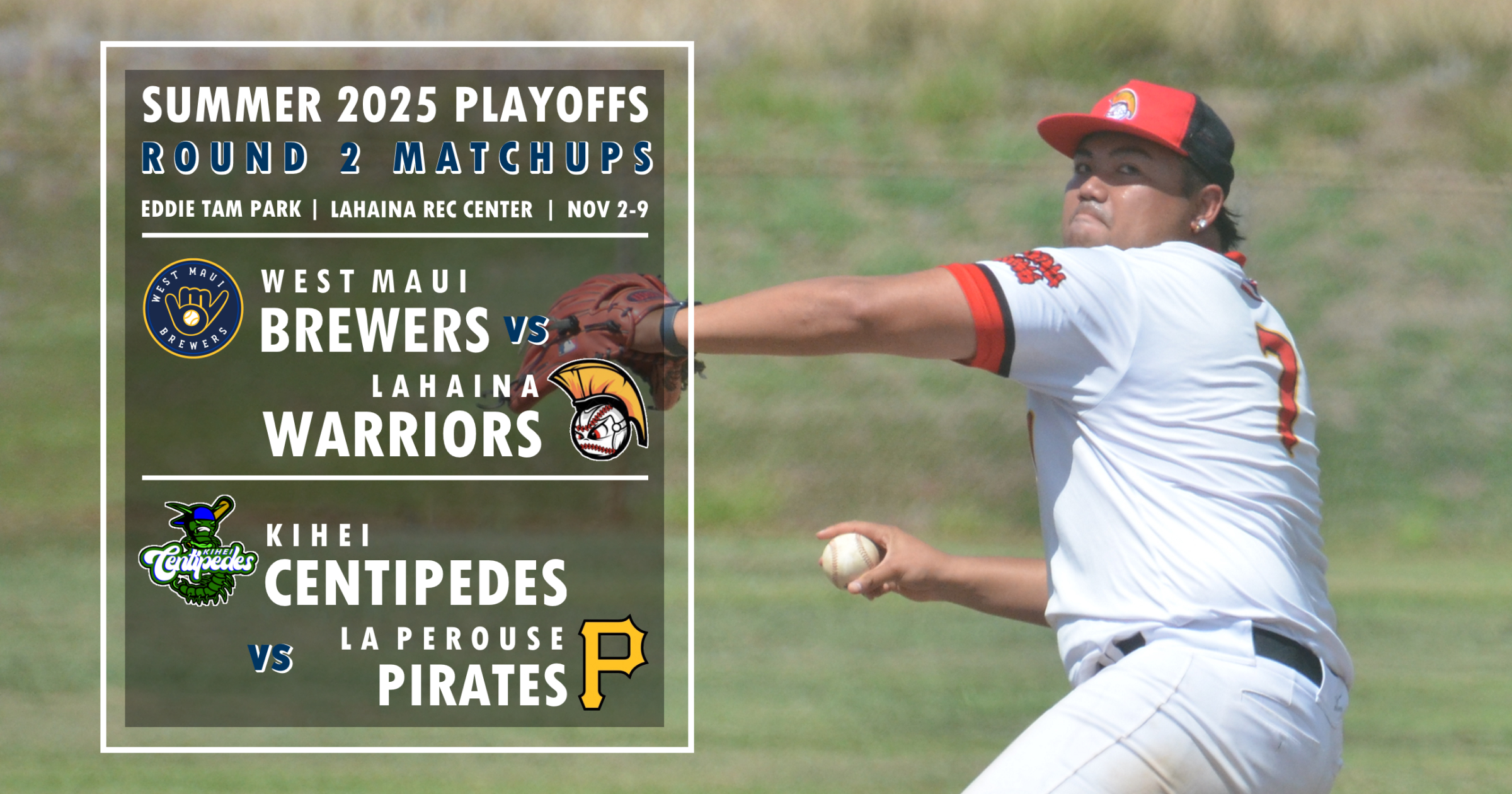 The Kihei Centipedes and West Maui Brewers won their 1st Round Playoff matchups and will advance to the best-of-three semi-final round beginning this weekend.